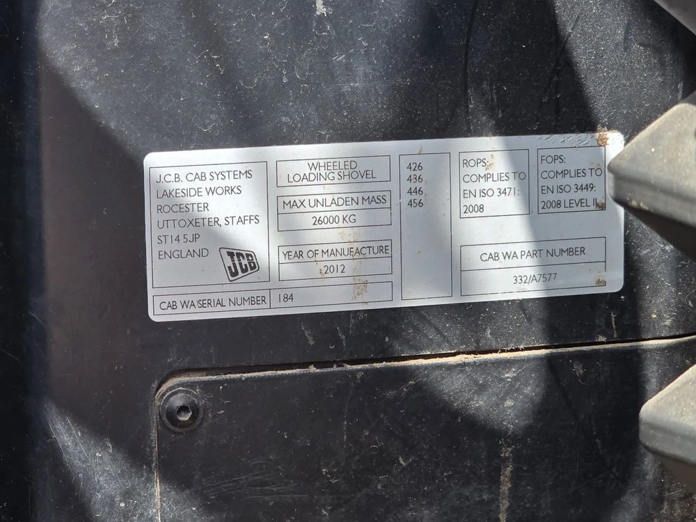 Ładowarka kołowa JCB 456E HT + łyżka rok 2012 stan bardzo dobry.