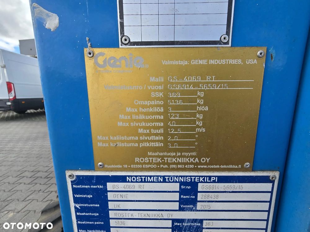 Podnośnik nożycowy Genie GS4069 RT rok 2015 14 m z 2015 roku . Maszyna dostępna w ofercie Maszyny Leśniak — sprzedaż i wynajem maszyn budowlanych, Skwierzyna, lubuskie.